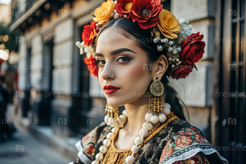 Испанская девушка в традиционном испанском национальном костюме. Перед быком. Бикоборство. Портрет символизирует традиции и культуру народа Испании