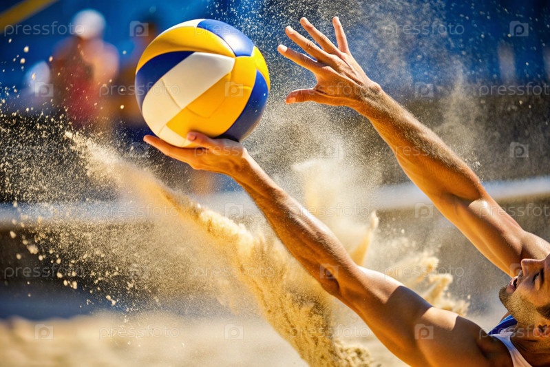 острый момент в игре. волейбол падает на песок. игрок пытается ударить по мячу. концепции летних олимпийских видов спорта
