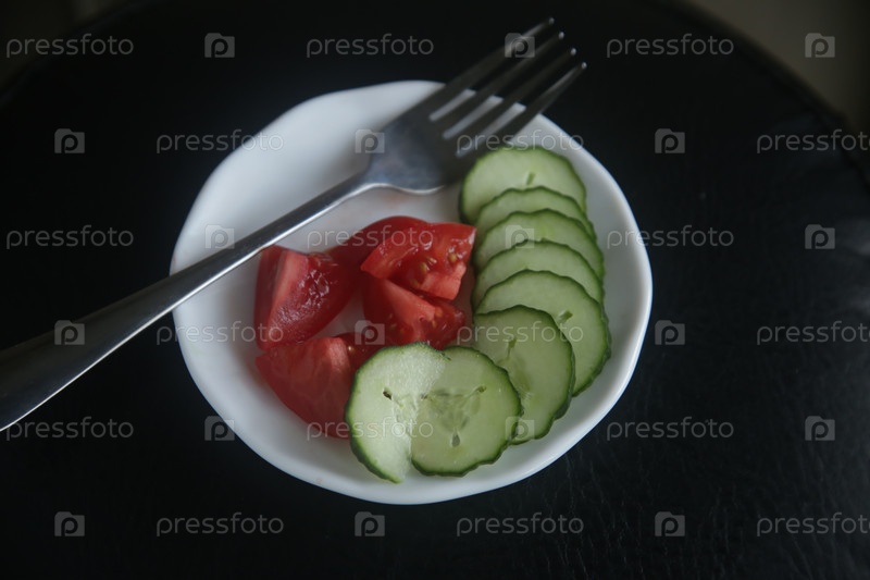 Помидоры и огурцы на тарелке в руке женщины