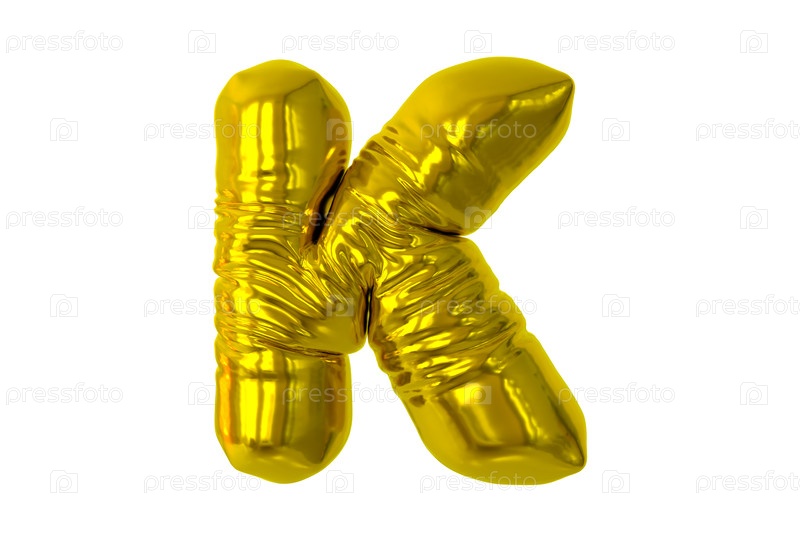 Буква K, надувная буква К из блестящего золотого материала