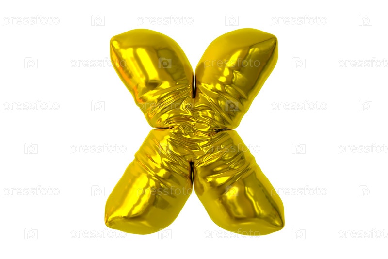 Буква X, надувная буква X из блестящего золотистого материала