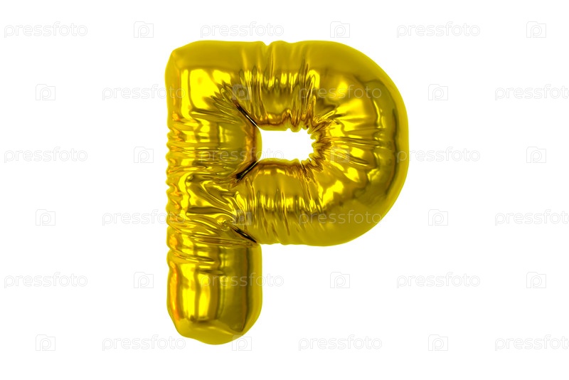 Буква P, надувная буква P из глянцевого золотистого материала