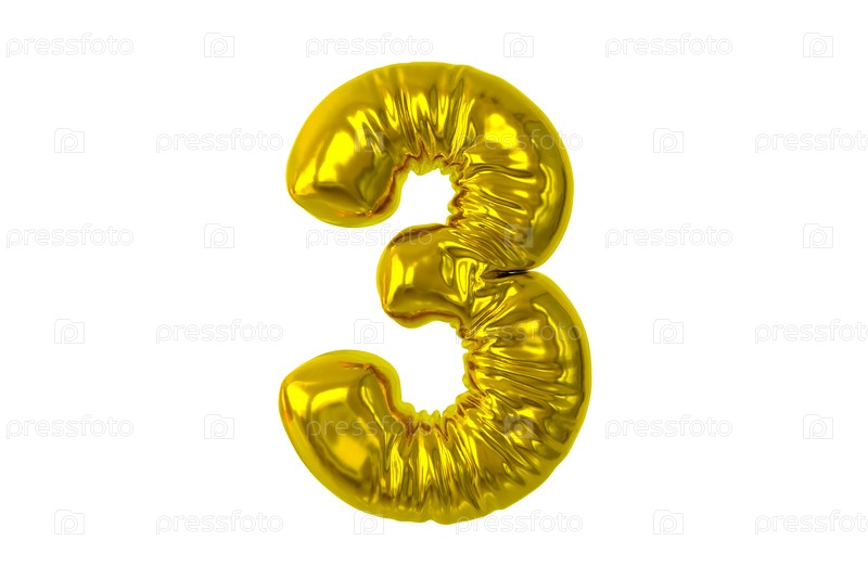 Номер три, надувный номер три из глянцевого золотого материала