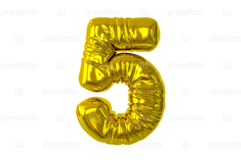 Номер пять, надувная фигура пять из глянцевого золотого материала