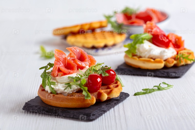 Вкусные бельгийские вафли с лососем и сливочным сыром