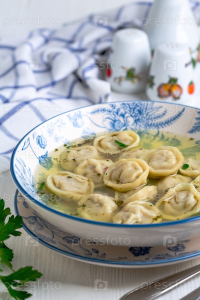 мясные пельмени в пряном бульоне