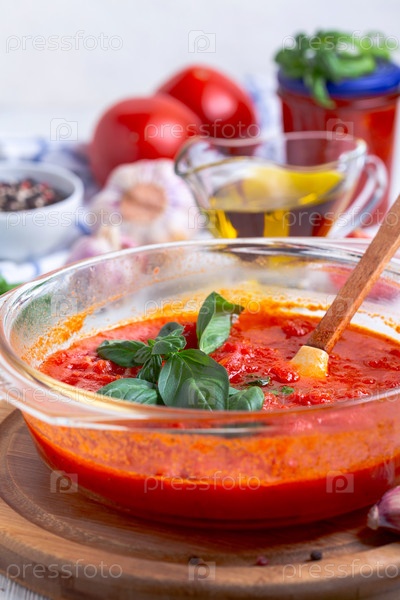 Домашний томатный соус (неаполитанский) с ближайшим чесноком и базиликом
