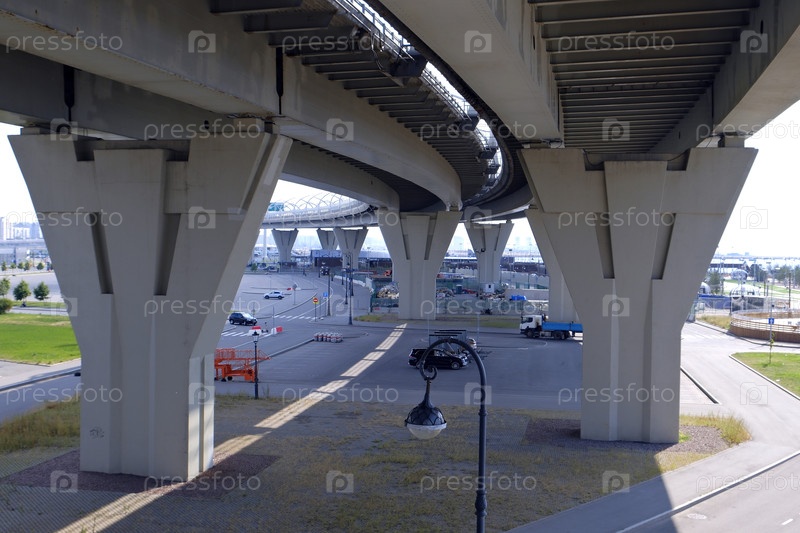 Полеты моста, ведущего на стадион 'Газпром Арена' снизу.Россия Санкт-Петербург 30 июля 2025