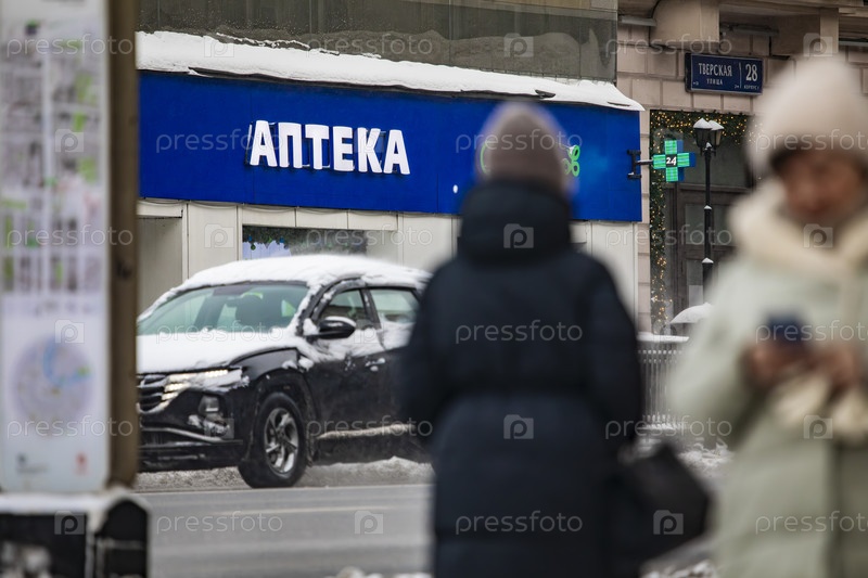 Аптека на Тверской улице зимой, Москва
