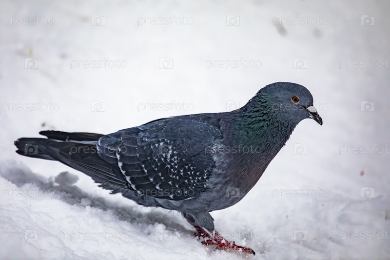 Голубой голубь в снегу зимой