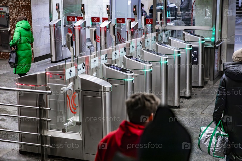 Турникеты у входа в метро с бесконтактной оплатой