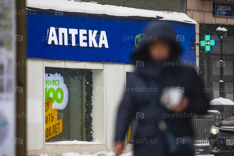 Аптека на Тверской улице зимой, Москва