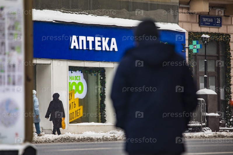 Аптека на Тверской улице зимой, Москва