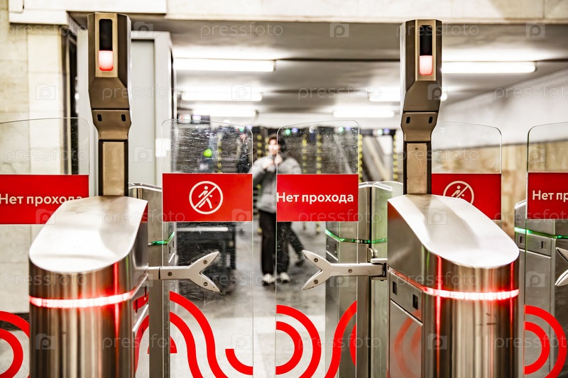 Турникеты у входа в метро с табличками 'Нет проезда'