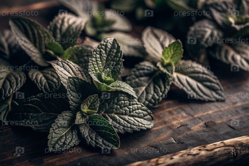 Закрытие зеленых листьев мяты. Листья с заметными венами и текстурой. Мента, бальзам для приготовления чая. Травяной чай для нервной системы