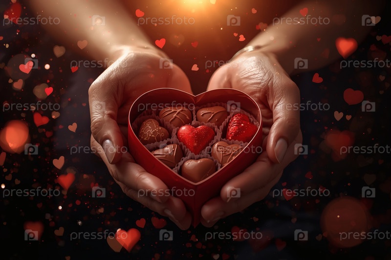Руки женщины с подарком в форме сердца с шоколадом на День святого Валентина