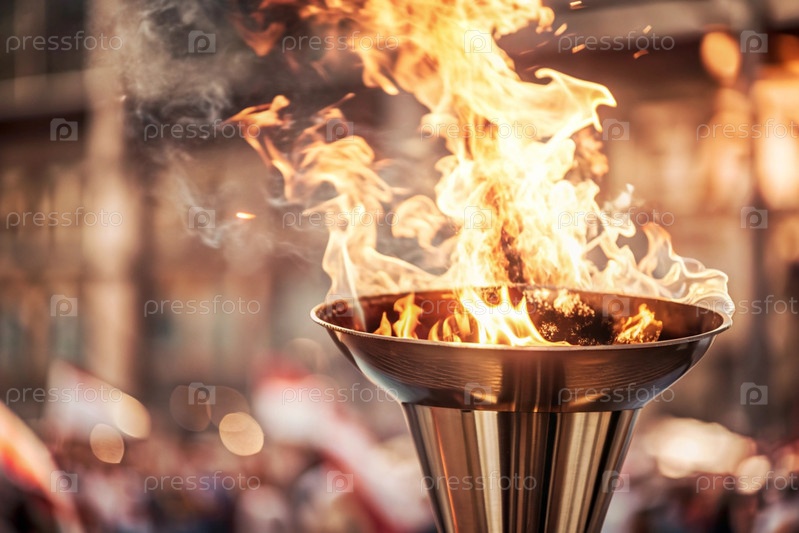 Пламя олимпийского факела горит среди красивого размытого боке