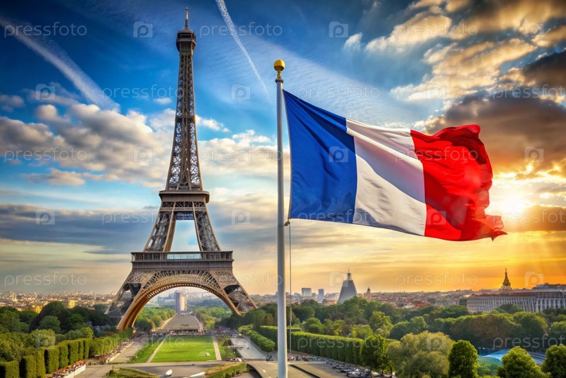 14 июля - Национальный день Франции.Французский национальный флаг на Эйфелевой башне.Триколор