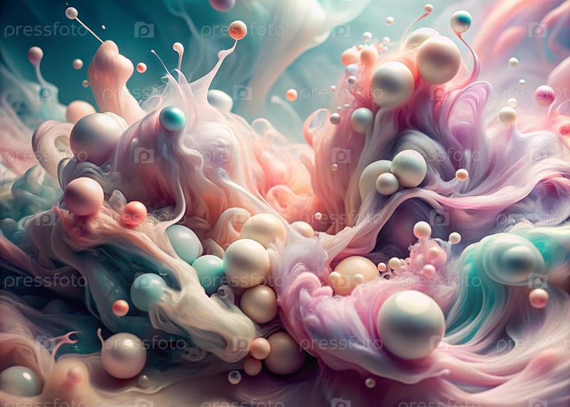 Абстрактный, мечтательный акварельный фон с волнами, полосами и жидкими потоками розового, синего и жемчуга