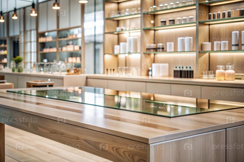 Минимальный фон для демонстрации продукта. Современная стеклянная подиум в современном магазине косметики. Элегантный дизайн для презентации косметической продукции