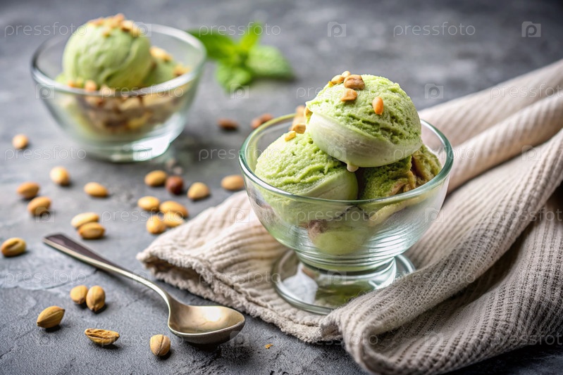 сладкий десерт. любовь к мороженому. шарики с фрикадельками в стеклянной тарелке. баннер, реклама