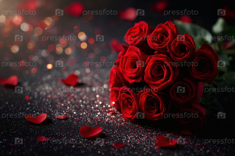 Концепция Дня Святого Валентина.Окончание букета красных роз на темном фоне в День святого Валентина