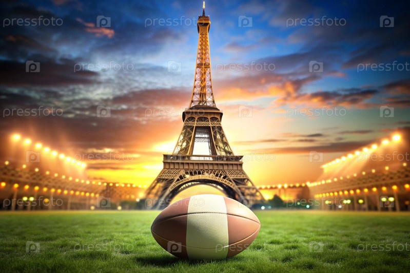 Американский футбол. Рэгби перед Эйфелевой башней. Концепция спортивных игр и соревнований. Летние Олимпийские игры