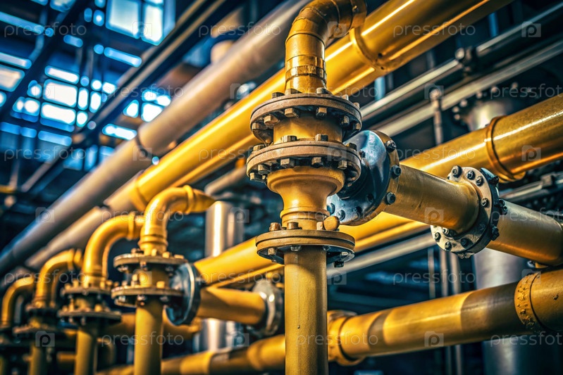 Газовая промышленность, система транспортировки нефти. Нефтегазопроводная нефтяная индустрия. Желтые газовые трубы - это электрооборудование. Топливное и энергетическое оборудование