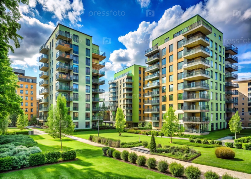 Современные многоэтажные жилые дома. Строительство новых жилых кварталов. Новые здания. Строительный бизнес. Ипотека для нового экологически чистого жилья