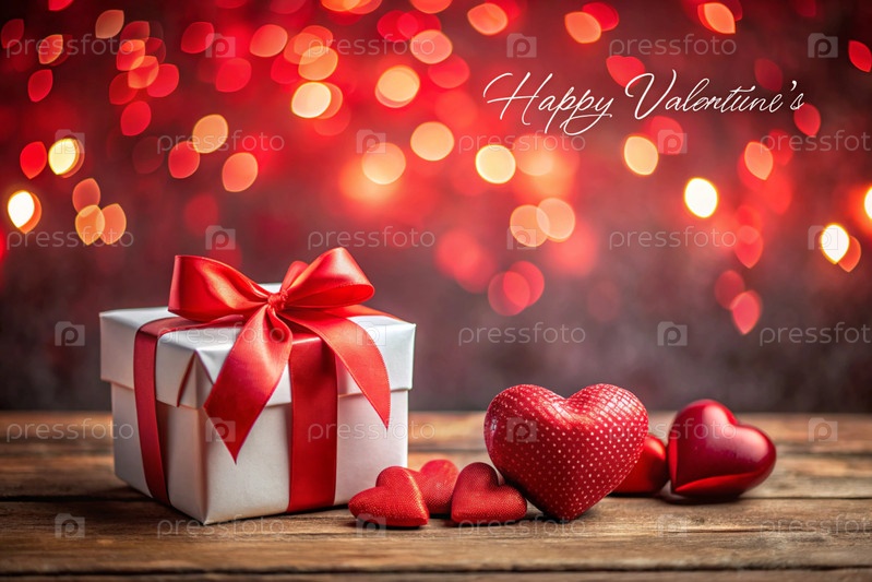 Подарочные коробки с огнями и красными сердцами.Уютная концепция на День святого Валентина.Подготовка подарков для близких