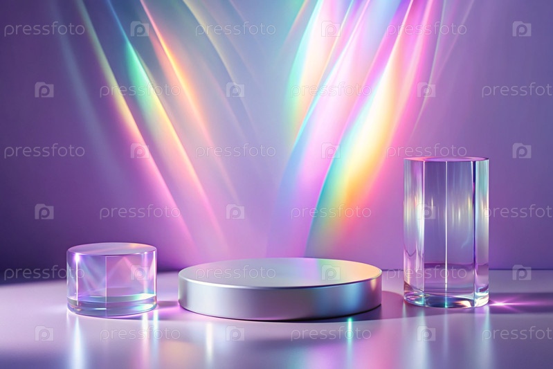 Пустой цилиндрический подиум со сверкающими кристаллами при преломлении света на минималистическом фоне, стенд для демонстрации моделей косметики и товаров