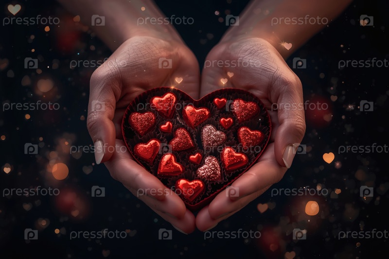 Руки женщины с подарком в форме сердца с шоколадом на День святого Валентина