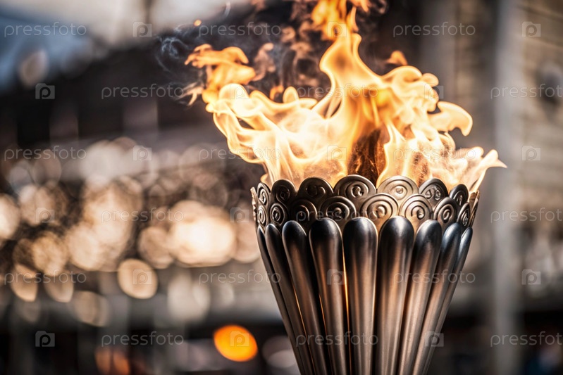 Пламя олимпийского факела горит среди красивого размытого боке