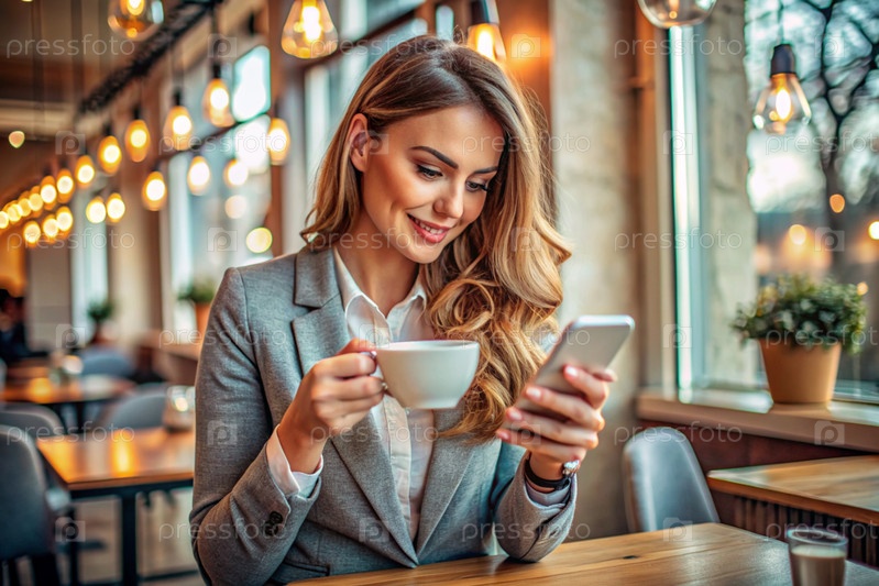 Молодая бизнес-женщина работает на ноутбуке в кафе или делает покупки онлайн