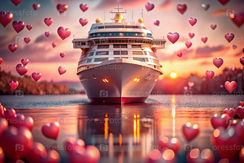 Любовный круиз. Ваше сердце и ваше сердце. Подарок для любимого человека в День святого Валентина - это как романтическое путешествие. Баннер с предложениями и акциями от туроператора