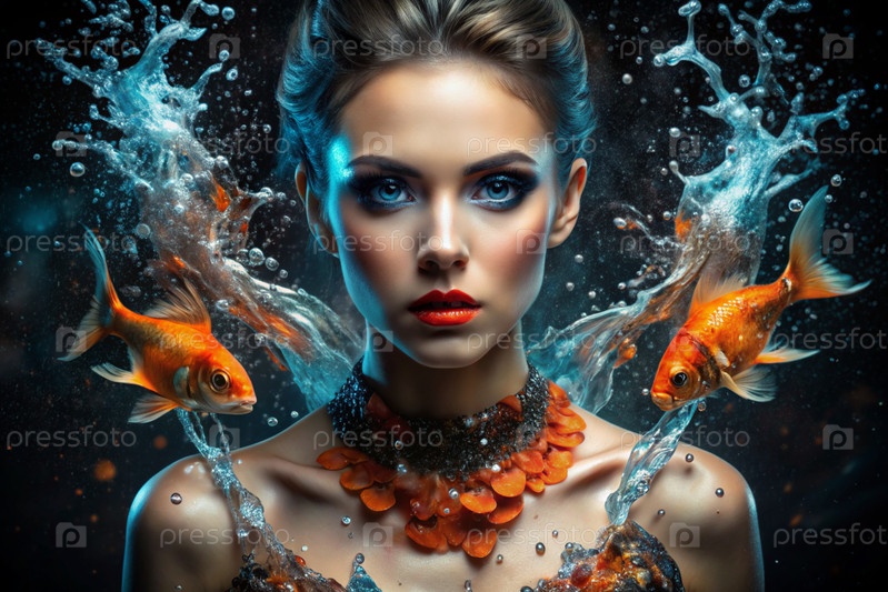 Знаки зодиака. Астрологический прогноз. Предсказания. Красивая девушка по знаку Зодиака Рыб. Понятие астрологии и гороскопа. Серия изображений 12 знаков зодиака