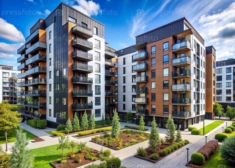 Современные многоэтажные жилые дома. Строительство новых жилых кварталов. Новые здания. Строительный бизнес. Ипотека для нового экологически чистого жилья