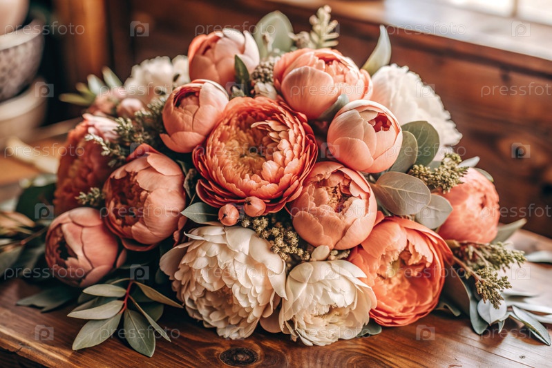 Малый бизнес. Красивый деликатный букет пиоников для покупателя. Цветочное украшение. Доставка цветов, обработка заказов