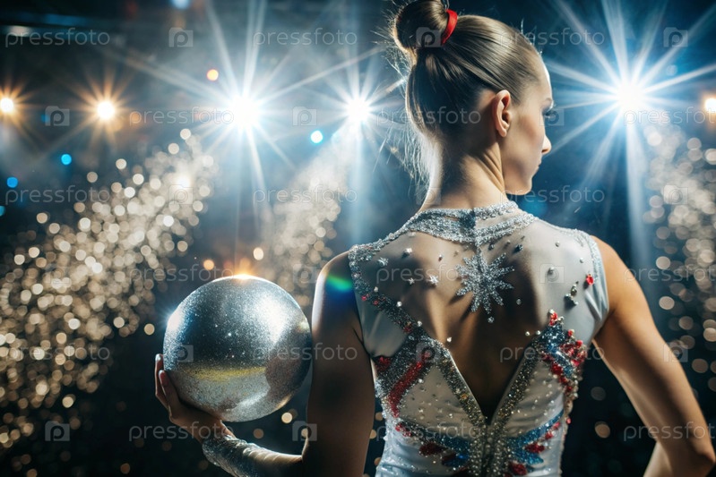 Ритмическая гимнастика Близкий план красивой гимнастки с мячом в центре внимания. олимпийский вид спорта