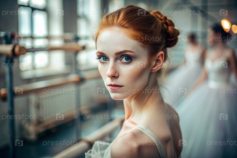 Портрет красивой молодой балерины в балетном зале, сияние русского балета, балерина в туту на фоне репетиционного зала