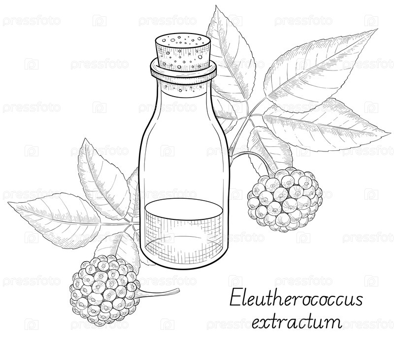 Лекарственные растения для растительной органической настойки. Альтернативная медицина, сбор травы. Векторная иллюстрация в стиле чернила