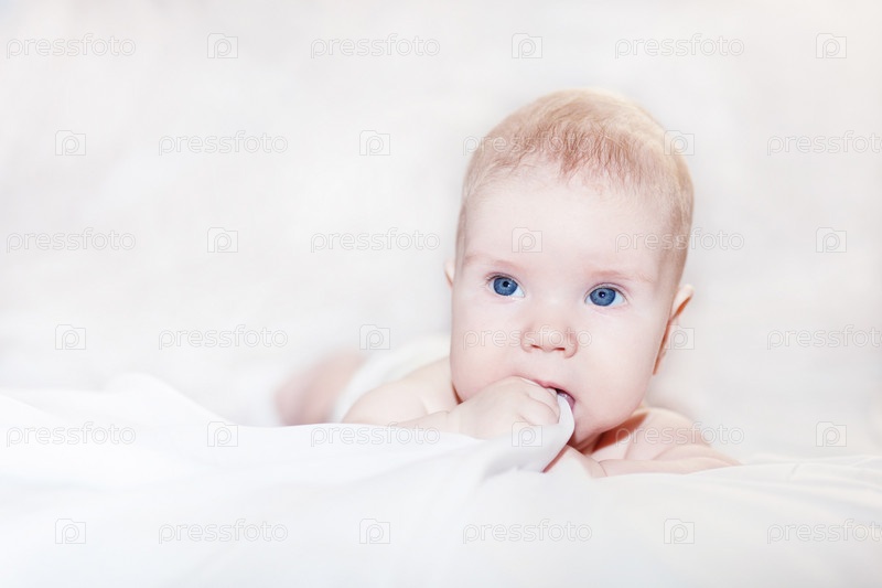 Портрет младенца, лежащего на одеяле