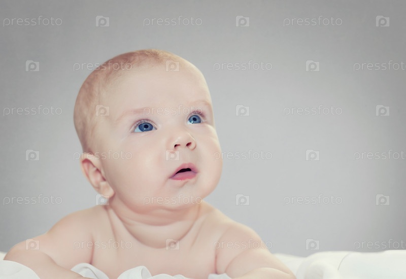 Портрет младенца, лежащего на одеяле