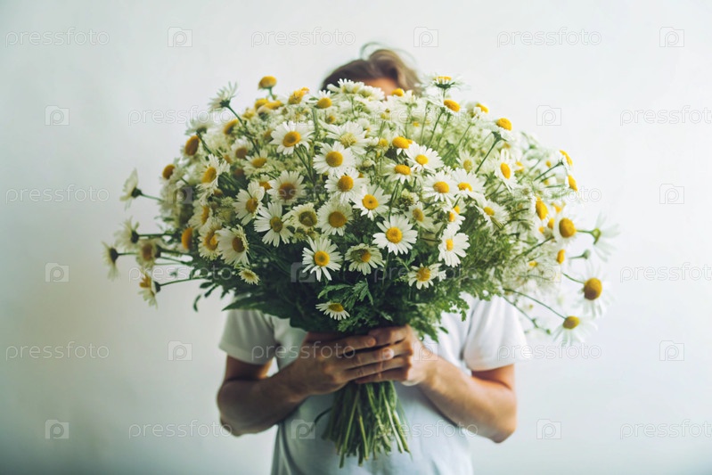 Мужчина с великолепным букетом маргариток мужчины дарят цветы девушкам близко понятие семьи, любви и верности
