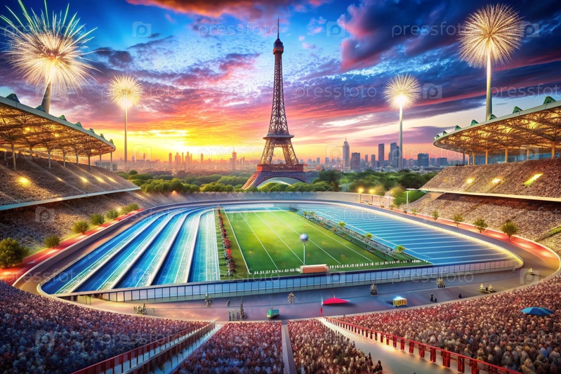 14 июля - Национальный день Франции. Государственный флаг Франции на Эйфелевой башне. Триколор. Концепция Олимпийских игр во Франции 2024