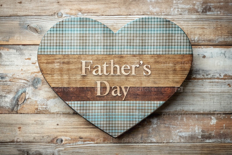 Стильная открытка, баннер на День счастливого отца с деревянным сердцем на винтажном сером, синем и коричневом деревянном фоне