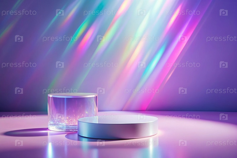 Пустой цилиндрический подиум со сверкающими кристаллами при преломлении света на минималистическом фоне, стенд для демонстрации моделей косметики и товаров