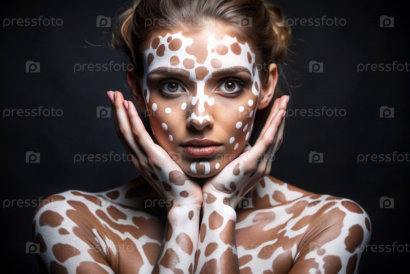 Лейкодермия. Витилиго. Плохая пигментация кожи. Большие белые пятна по всему телу и лицу. Портрет красивой девушки с кожными заболеваниями