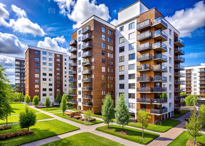 Современные многоэтажные жилые дома. Строительство новых жилых кварталов. Новые здания. Строительный бизнес. Ипотека для нового экологически чистого жилья