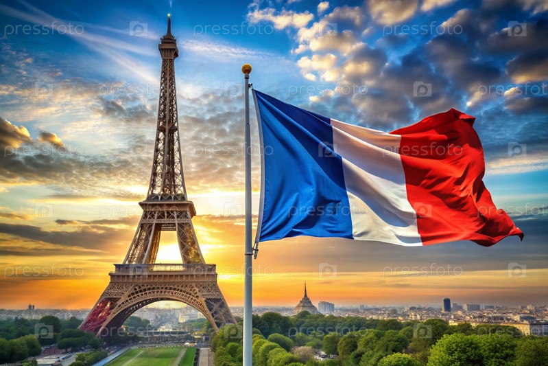 14 июля - Национальный день Франции.Французский национальный флаг на Эйфелевой башне.Триколор